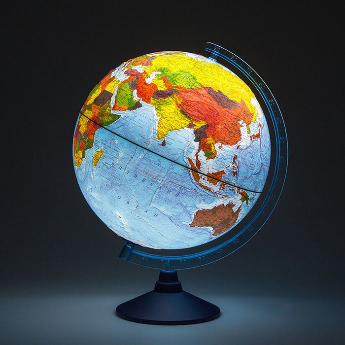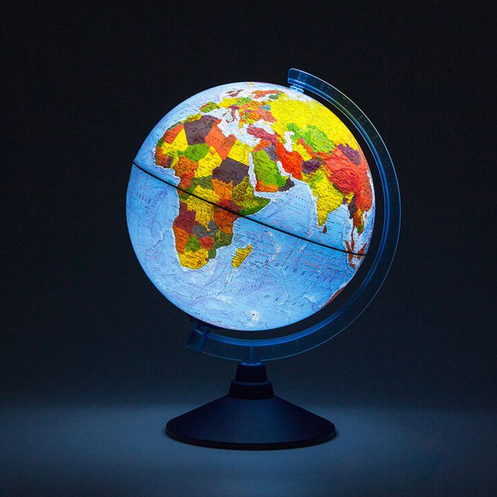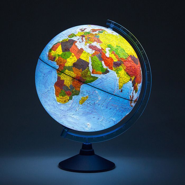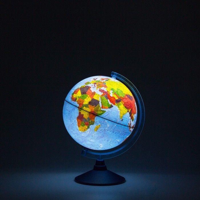 Диаметр, см: 25,00 Наличие подсветки: Да Тип: политический Торговая марка: Globen Тип питания: батарейки Масштаб: 1:50 млн Мин. партия и варианты упаковок: 1 -
