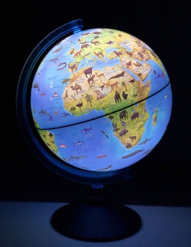 Диаметр, см: 25,00 Наличие подсветки: Да Тип: зоогеографический Торговая марка: Globen Тип питания: батарейки Масштаб: 1:50 млн Мин. партия и варианты упаковок: 1 -