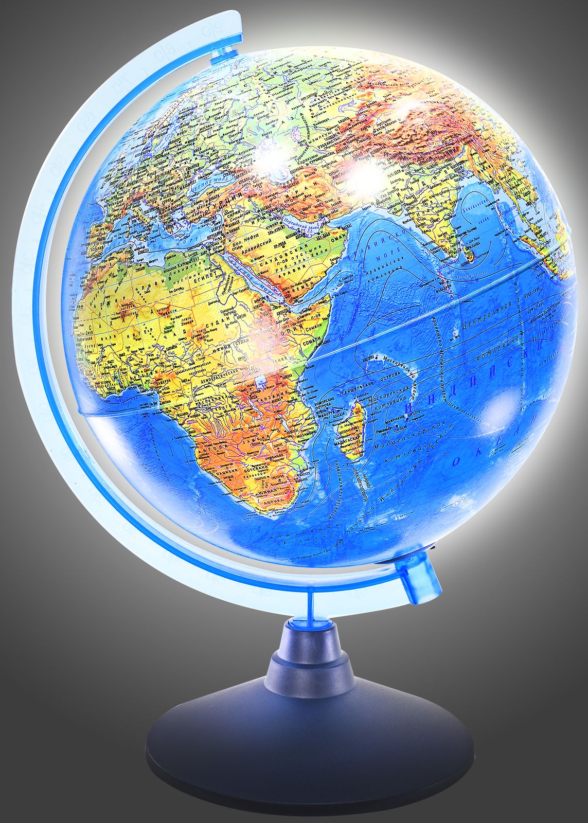 Диаметр, см: 21,00 Наличие подсветки: Да Тип: физико-политический Торговая марка: Globen Тип питания: от сети Масштаб: 1:60 млн Мин. партия и варианты упаковок: 1 -