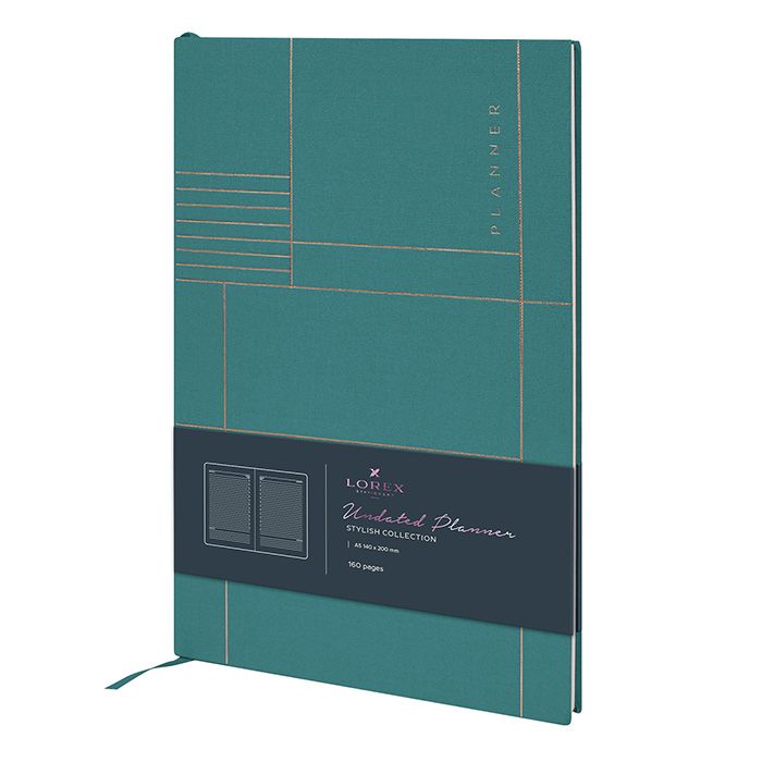 Формат: А5 Количество листов: 80 Вид изделия: Планинг Степень датированности: недатированный Цвет обложки: зеленый Цвет бумаги в блоке: цветной Мин. партия и варианты упаковок: 1 / 12 / 24 Планер недатиррованный, А5, LOREX LINEN STYLISH COLLECTION, 80 л., интегральная обложка, изумрудный