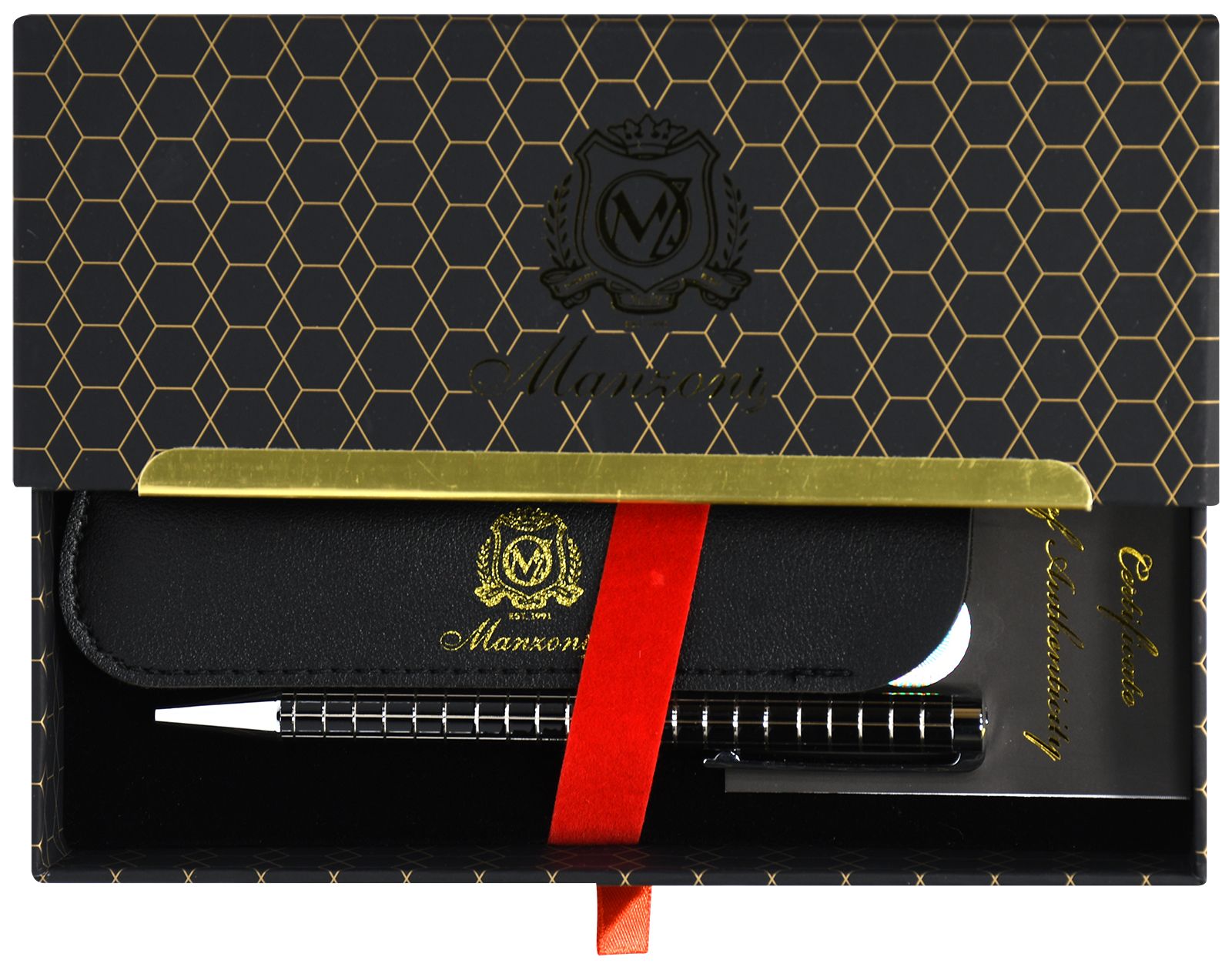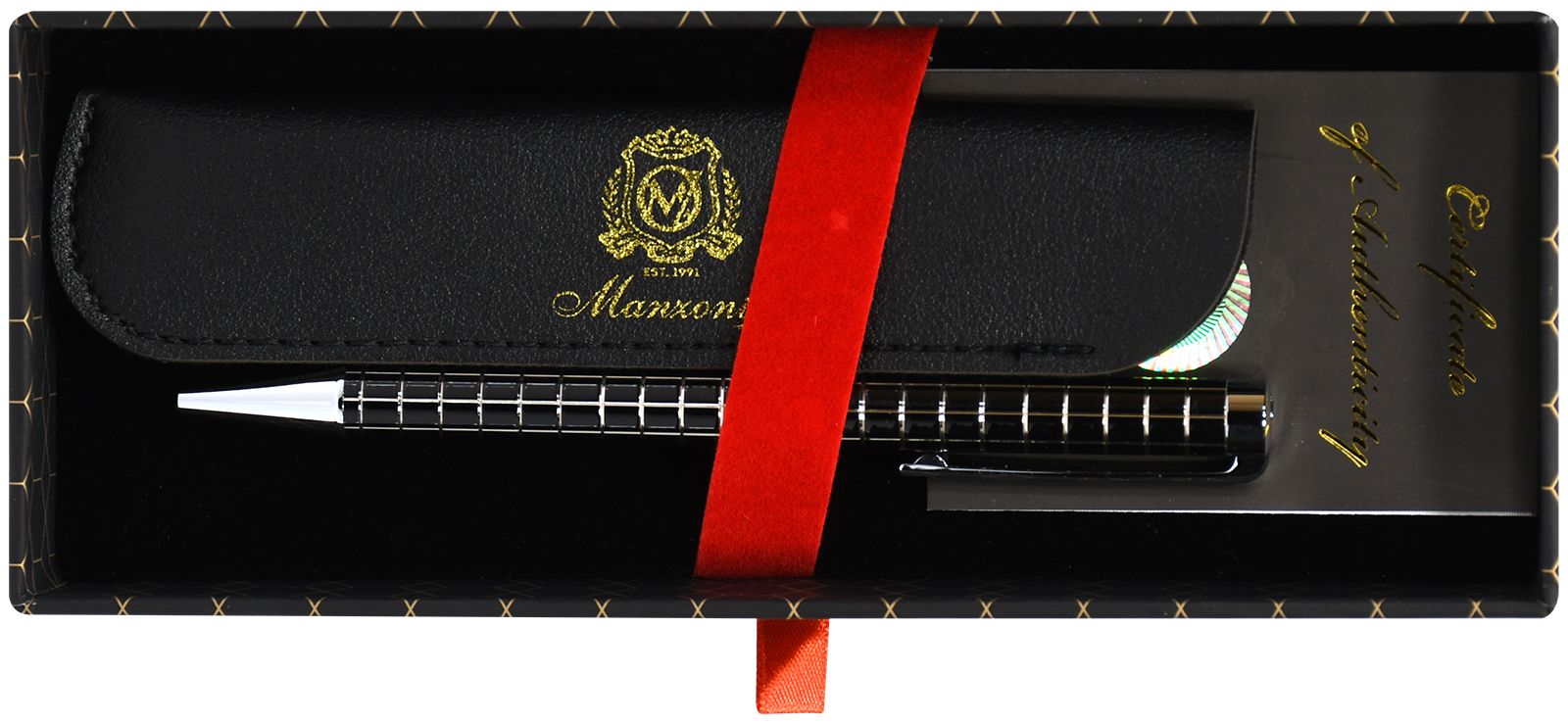 Цвет чернил: синий Механизм автоматической ручки: поворотный Толщина линии письма, мм: 0,50 Цвет корпуса: черный металлик Длина стержня, мм: 98 Пишущий узел, мм: 1,00 Мин. партия и варианты упаковок: 1 / 25 / 50 Ручка шариковая Manzoni Panteon синяя 1 мм, черный металлик
