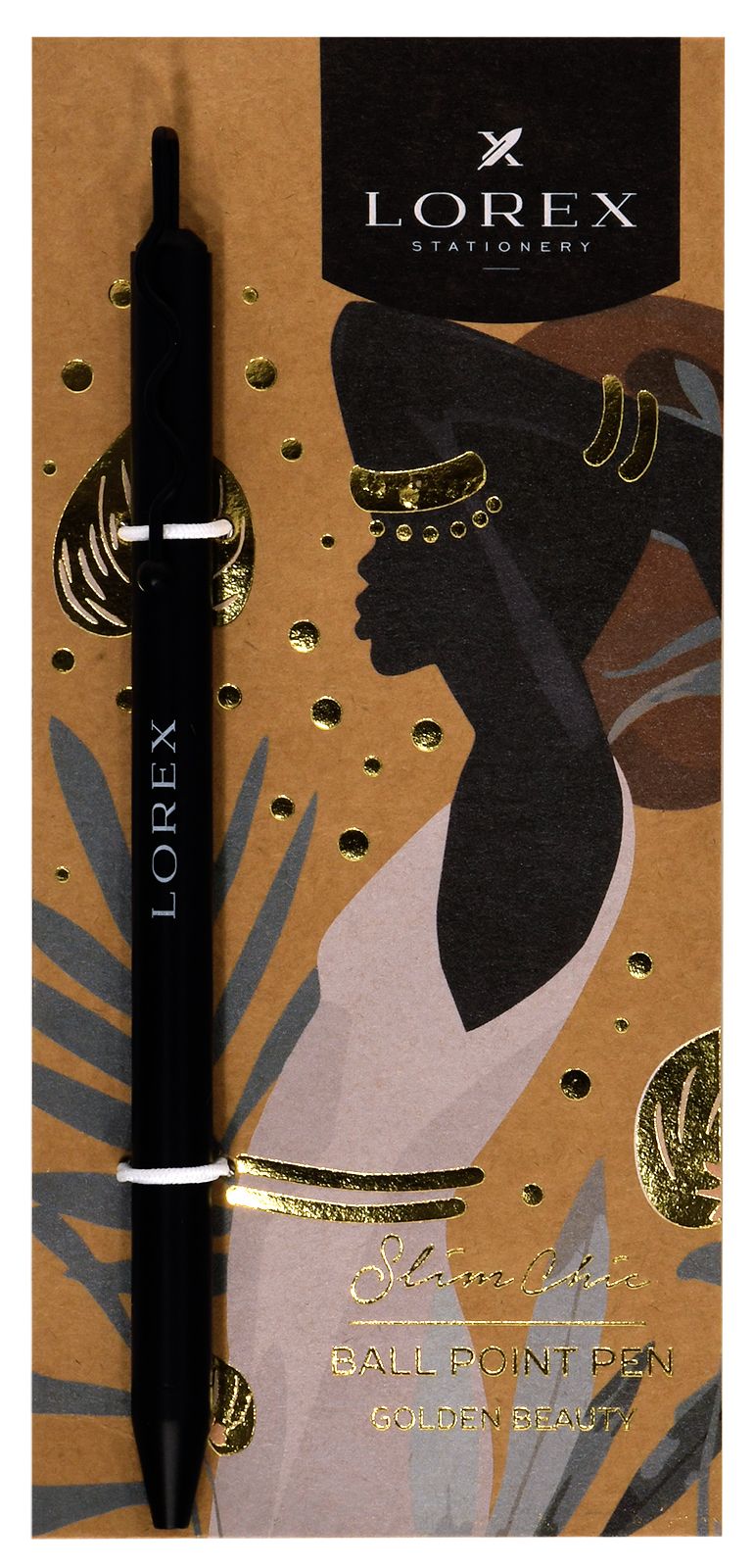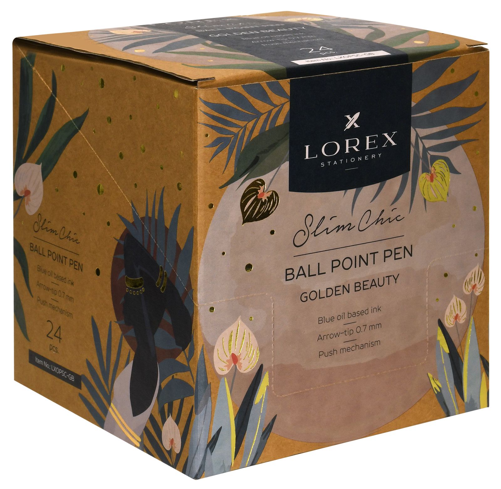Цвет чернил: синий Механизм автоматической ручки: кнопочный Толщина линии письма, мм: 0,35 Цвет корпуса: ассорти Длина стержня, мм: 98 Пишущий узел, мм: 0,70 Мин. партия и варианты упаковок: 1 / 24 / 96 Ручка шариковая LOREX Slim Chic GOLDEN BEAUTY синяя 0,7 мм металл ассорти