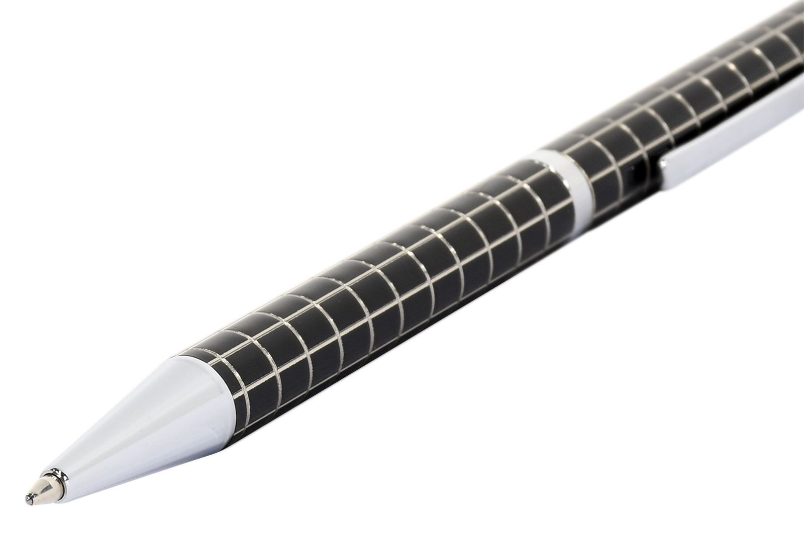 Цвет чернил: синий Механизм автоматической ручки: поворотный Толщина линии письма, мм: 0,50 Цвет корпуса: черный Длина стержня, мм: 98 Пишущий узел, мм: 1,00 Мин. партия и варианты упаковок: 1 / 25 / 50 Шариковая ручка MANZONI PRATO, черная, в футляре