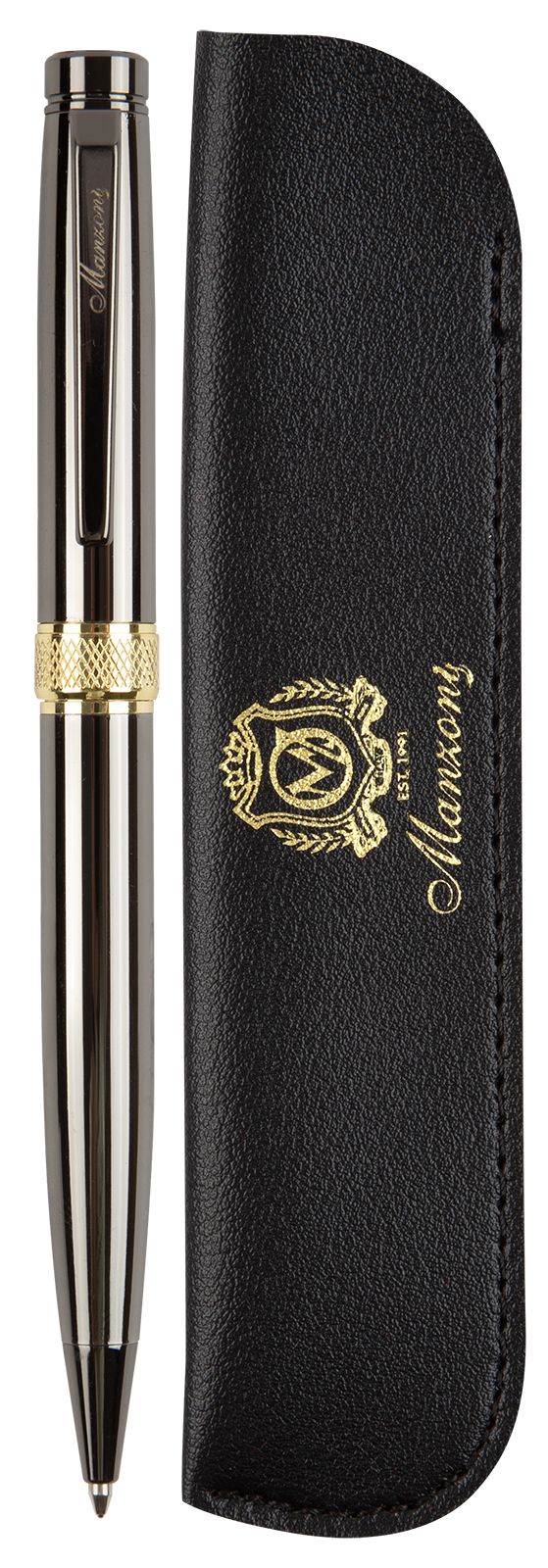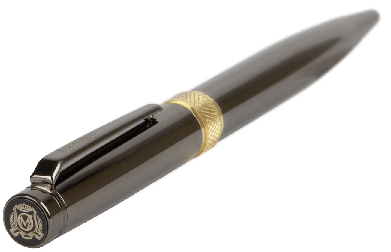 Цвет чернил: синий Механизм автоматической ручки: поворотный Толщина линии письма, мм: 0,50 Цвет корпуса: черный Длина стержня, мм: 98 Пишущий узел, мм: 1,00 Мин. партия и варианты упаковок: 1 / 100 / 200 Ручка шариковая подарочная Manzoni Verona синяя 1 мм, корпус металл черный, оружейный металл, золото, тубус