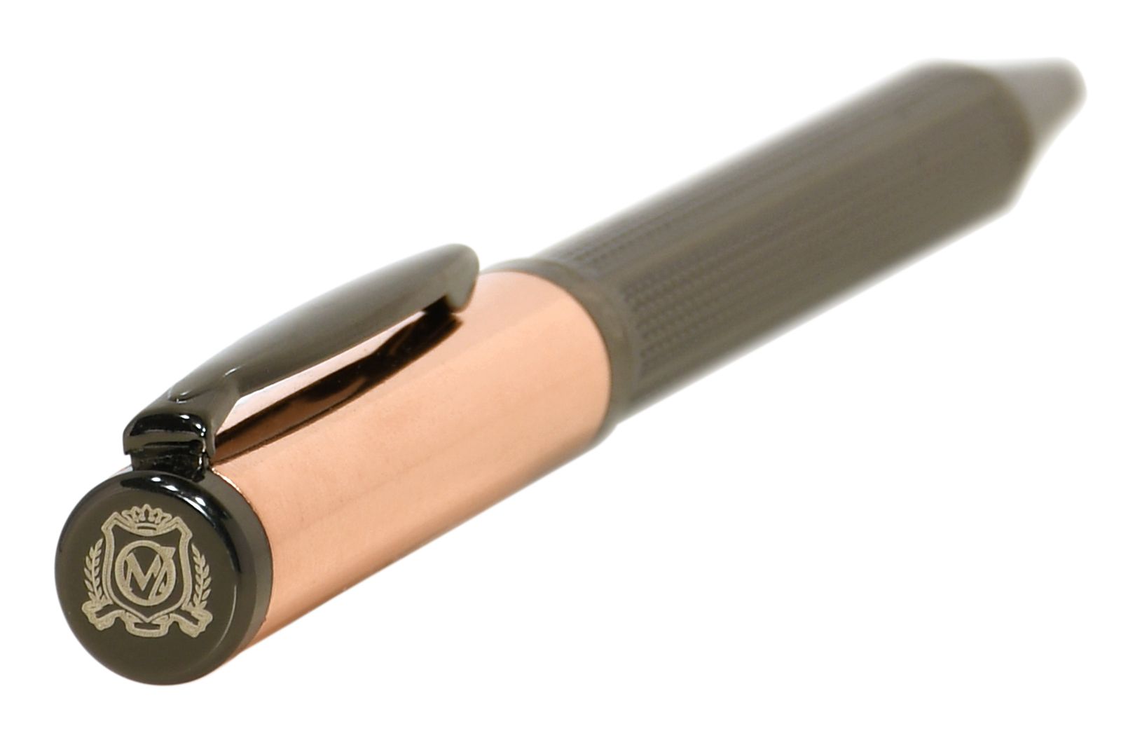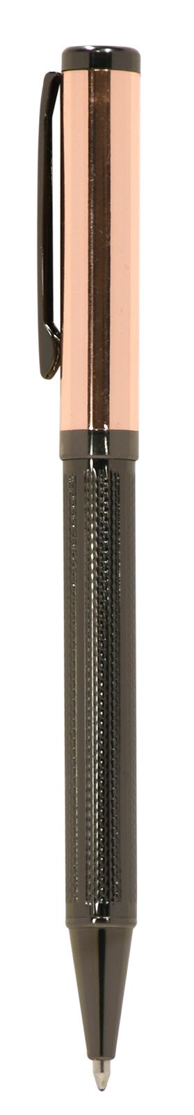 Цвет чернил: синий Механизм автоматической ручки: поворотный Толщина линии письма, мм: 0,50 Цвет корпуса: оружейный металл Длина стержня, мм: 98 Пишущий узел, мм: 1,00 Мин. партия и варианты упаковок: 1 / 25 / 50 Ручка шариковая подарочная Manzoni Recco синяя 1 мм, корпус металлический розовое золото