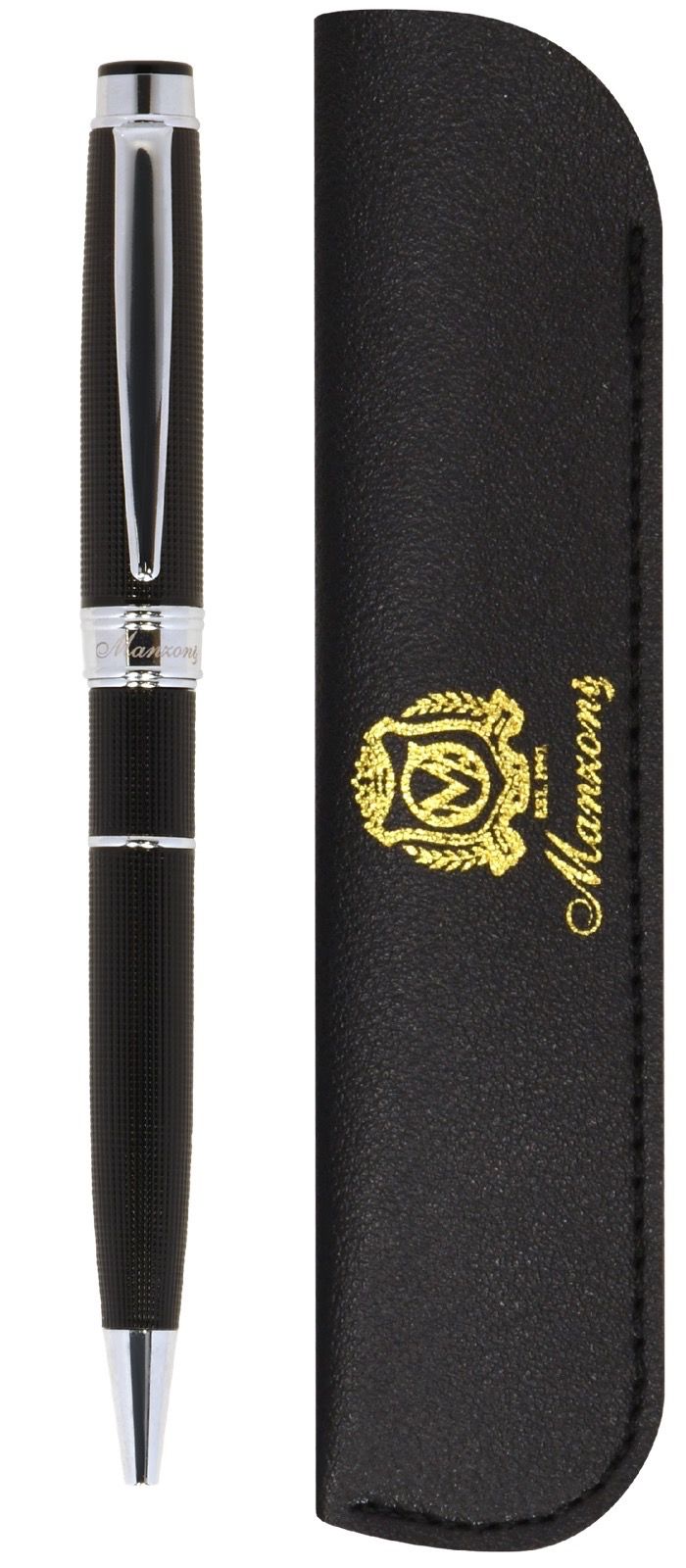 Цвет чернил: синий Механизм автоматической ручки: поворотный Толщина линии письма, мм: 0,50 Цвет корпуса: черный металлик Длина стержня, мм: 98 Пишущий узел, мм: 1,00 Мин. партия и варианты упаковок: 1 / 25 / 50 Ручка шариковая Manzoni Panteon синяя 1 мм, черный металлик
