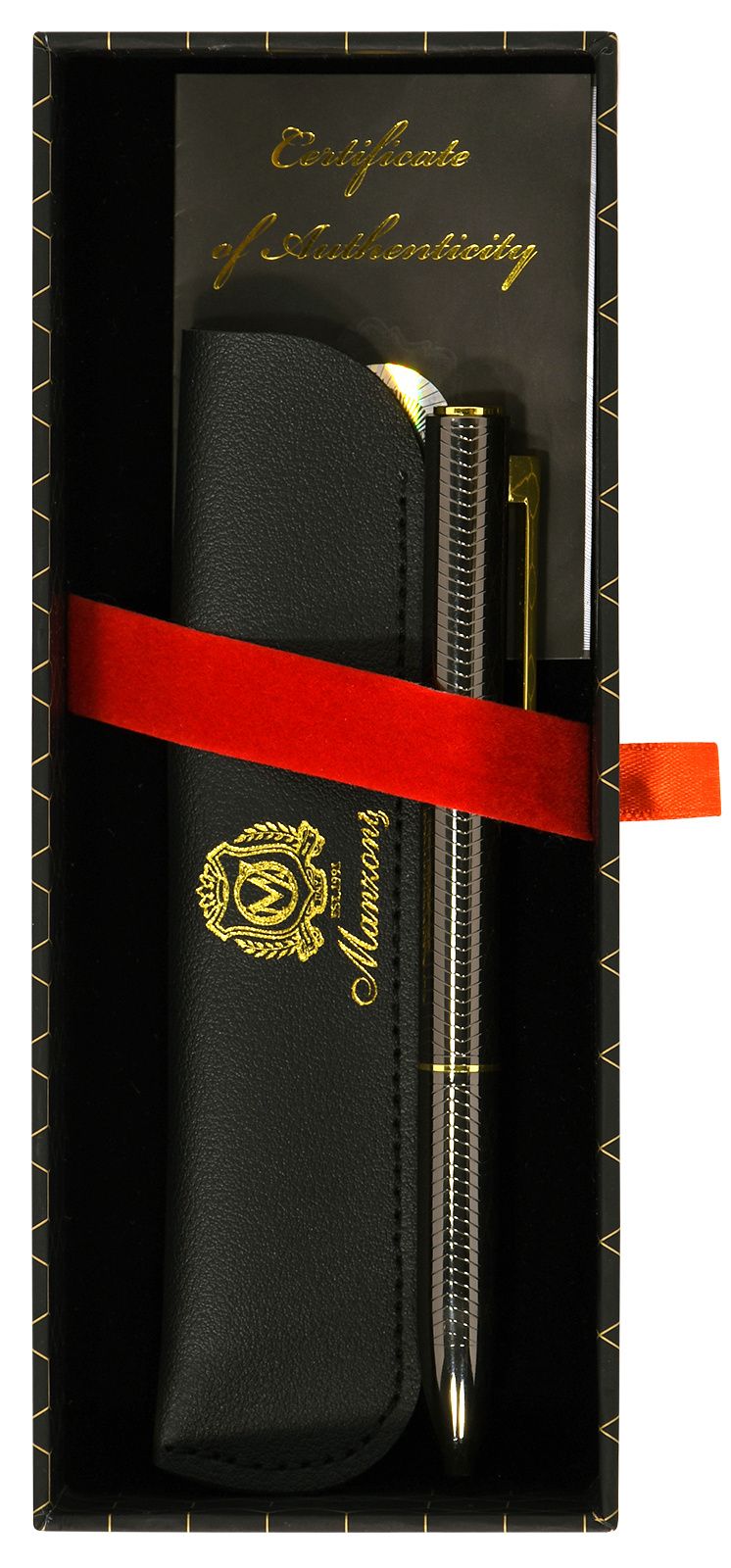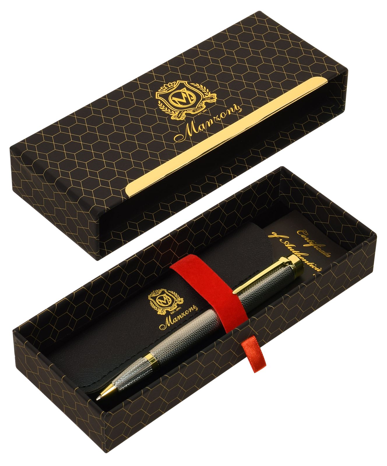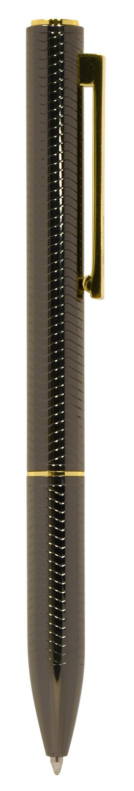 Цвет чернил: синий Механизм автоматической ручки: поворотный Толщина линии письма, мм: 0,50 Цвет корпуса: оружейный металл Длина стержня, мм: 98 Пишущий узел, мм: 1,00 Мин. партия и варианты упаковок: 1 / 25 / 50 Ручка шариковая подарочная Manzoni Pavia синяя 1 мм, корпус металлический оружейный, золотой, в футляре