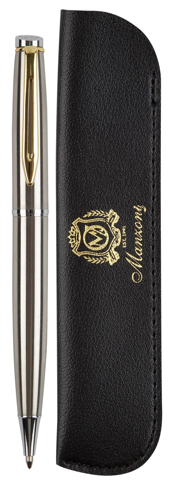 Цвет чернил: синий Механизм автоматической ручки: поворотный Толщина линии письма, мм: 0,50 Цвет корпуса: серебро Длина стержня, мм: 98 Пишущий узел, мм: 1,00 Мин. партия и варианты упаковок: 1 / 25 / 50 Ручка шариковая подарочная Manzoni Bari синяя 1 мм, корпус металлический серебряный, золотой