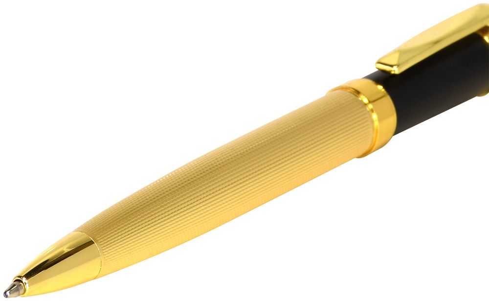 Цвет чернил: синий Механизм автоматической ручки: поворотный Толщина линии письма, мм: 0,50 Цвет корпуса: золотой Длина стержня, мм: 98 Пишущий узел, мм: 1,00 Мин. партия и варианты упаковок: 1 / 25 / 50 -