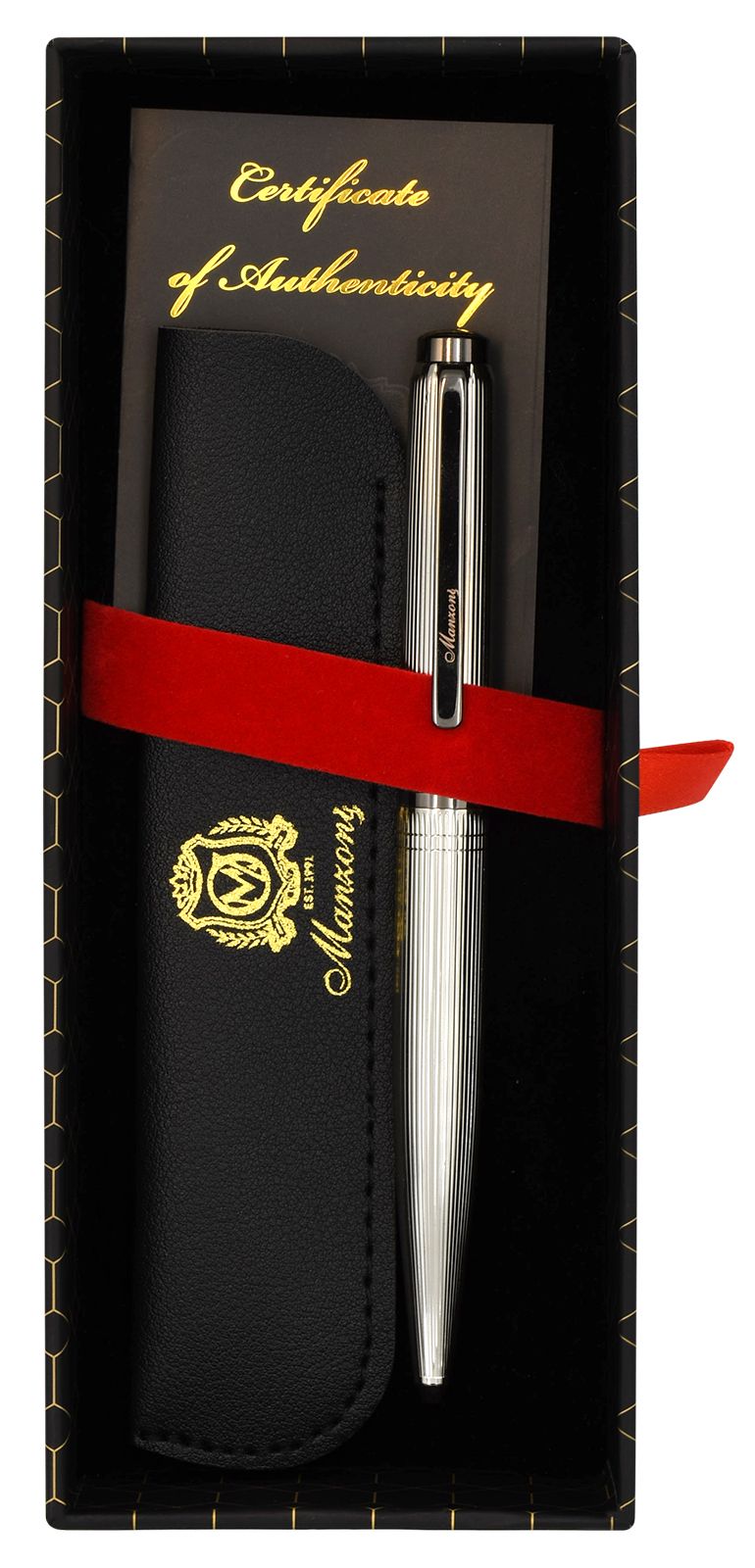 Цвет чернил: синий Механизм автоматической ручки: поворотный Толщина линии письма, мм: 0,50 Цвет корпуса: красный Длина стержня, мм: 98 Пишущий узел, мм: 1,00 Мин. партия и варианты упаковок: 1 / 25 / 50 Ручка шариковая подарочная Manzoni Baveno синяя 1 мм, корпус металлический красный, серебро, в футляре