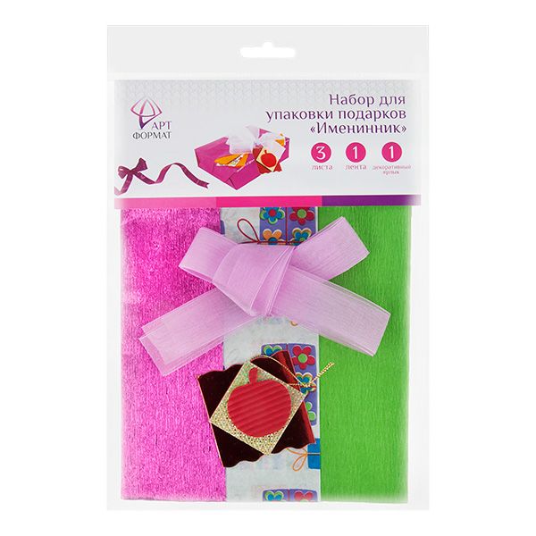 Серия: ИМЕНИННИК Цвет основной: ассорти Торговая марка: АРТформат Комплектация набора: 3 упаковочной бумаги, декоративные элементы Тематика праздника: день рождение Мин. партия и варианты упаковок: 1 / 12 / 72 -