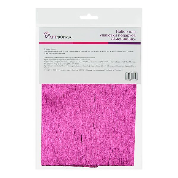 Серия: РОЗОВЫЙ Цвет основной: розовый Торговая марка: АРТформат Комплектация набора: 2 упаковочной бумаги, декоративные элементы Тематика праздника: универсальная Мин. партия и варианты упаковок: 1 / 10 / 300 -