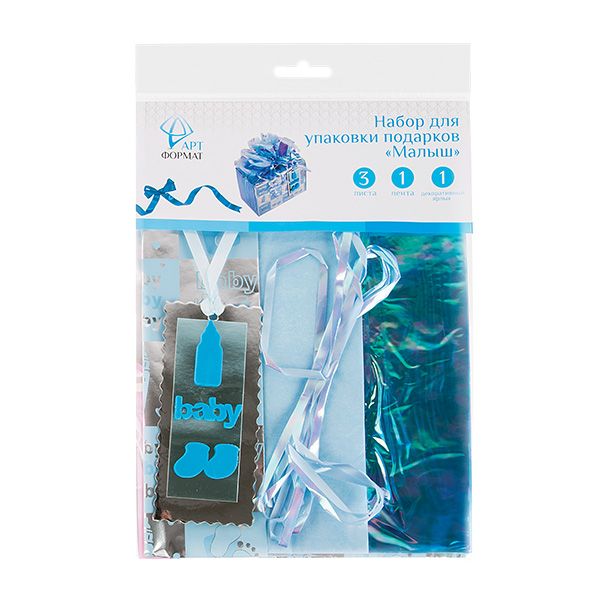 Серия: МАЛЫШ Цвет основной: ассорти Торговая марка: АРТформат Комплектация набора: 3 упаковочной бумаги, декоративные элементы Тематика праздника: день рождение Мин. партия и варианты упаковок: 1 / 12 / 72 Набор для упаковки подарков МАЛЫШ