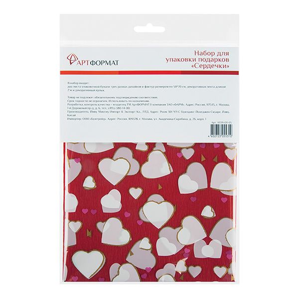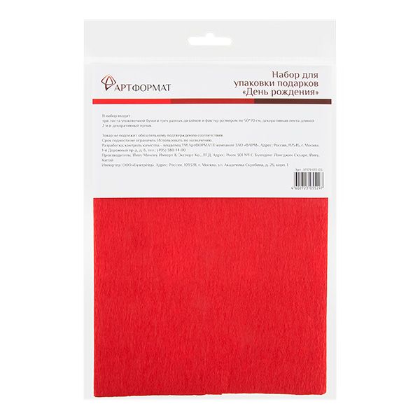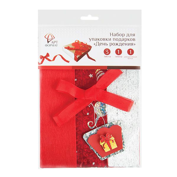 Серия: КРАСНЫЙ Цвет основной: красный Торговая марка: АРТформат Комплектация набора: 2 упаковочной бумаги, декоративные элементы Тематика праздника: универсальная Мин. партия и варианты упаковок: 1 / 10 / 300 -