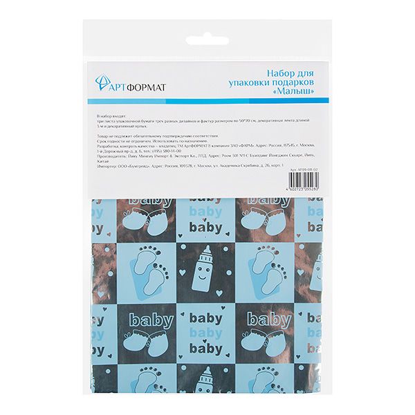 Серия: МАЛЫШ Цвет основной: ассорти Торговая марка: АРТформат Комплектация набора: 3 упаковочной бумаги, декоративные элементы Тематика праздника: день рождение Мин. партия и варианты упаковок: 1 / 12 / 72 -