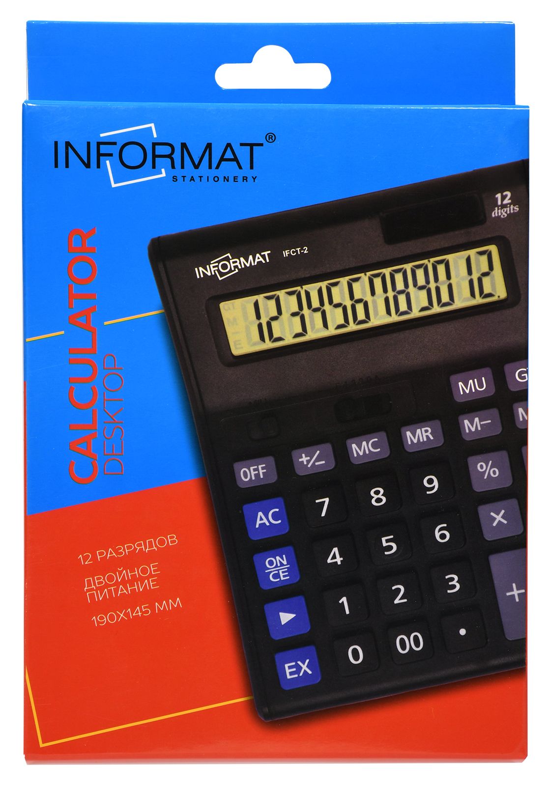 Цвет: черный Назначение калькулятора: настольный Разрядность калькулятора: 12 Вид офисной техники: Калькулятор Упаковка: картонная упаковка Наличие крышки: Нет Мин. партия и варианты упаковок: 1 / 30 / 90 Калькулятор INFORMAT IFCT-2 12 разрядный, настольный, черный