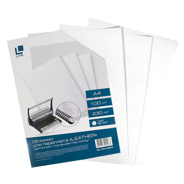 Цвет: белый Формат: А4 Материал: картон Серия: LEATHER Торговая марка: LITE Количество штук в упаковке: 100 шт/упак Мин. партия и варианты упаковок: 1 / 10 Обложка для переплета LITE LEATHER А4 картон 230 г/м2 белый п/кожу 100 шт/упак