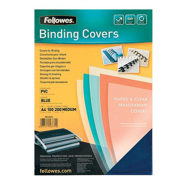 Обложки для переплета FELLOWES защитят документы от повреждений и надолго сохранят эстетичный внешний вид. Предназначены для переплета документов брошюровщиком с помощью пластиковых и металлических пружин.