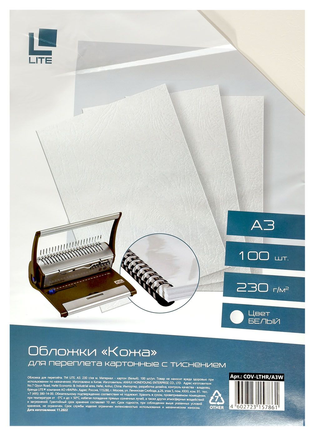 - Плотность обложки: 230 г/м²