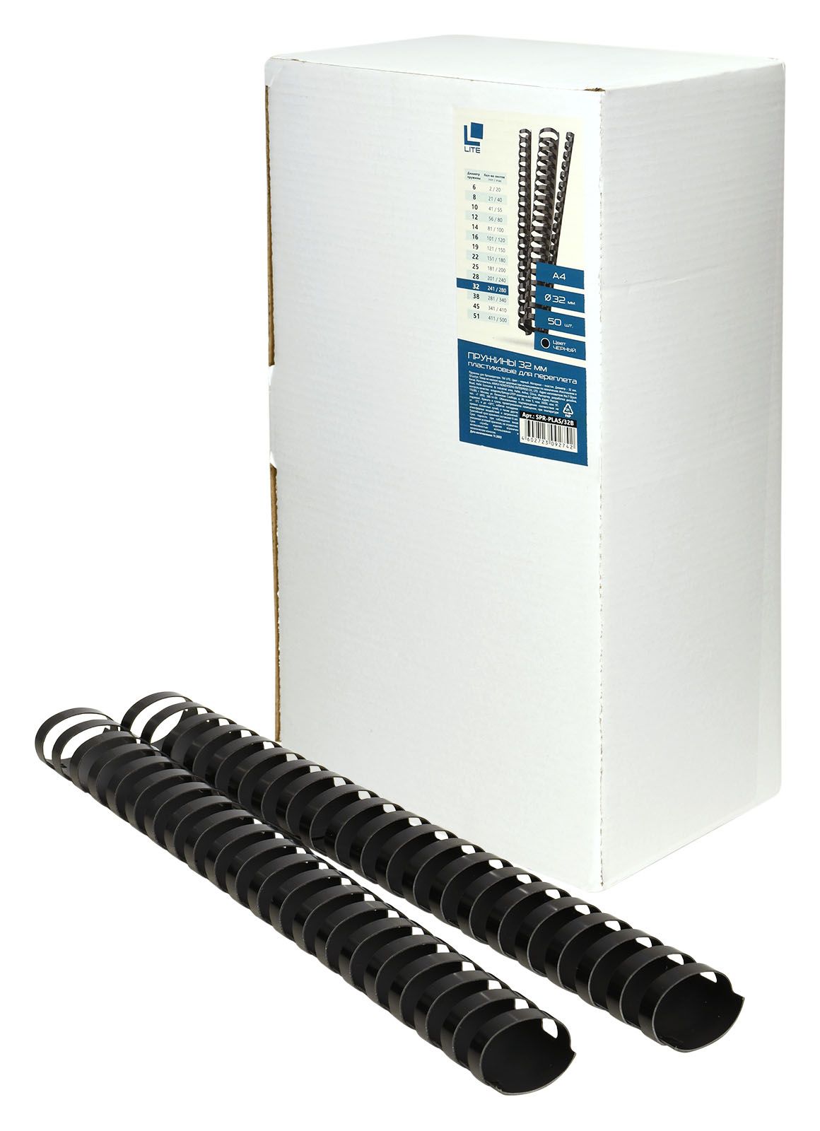 Цвет: черный Диаметр, мм: 32 Формат: А4 Материал: пластик Торговая марка: LITE Количество штук в упаковке: 50 шт/упак Мин. партия и варианты упаковок: 1 / 10 Пружина для переплета LITE 32 мм пластик А4 черн. 50 шт/упак