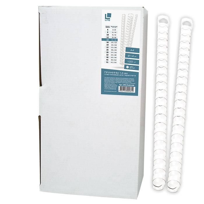 Пружины для переплета LITE предназначены для сшивания до 100 листов формата А4 при помощи брошюровщика. Позволяют вынимать и добавлять листы в готовый документ. Изготовлены из прочного пластика белого цвета.