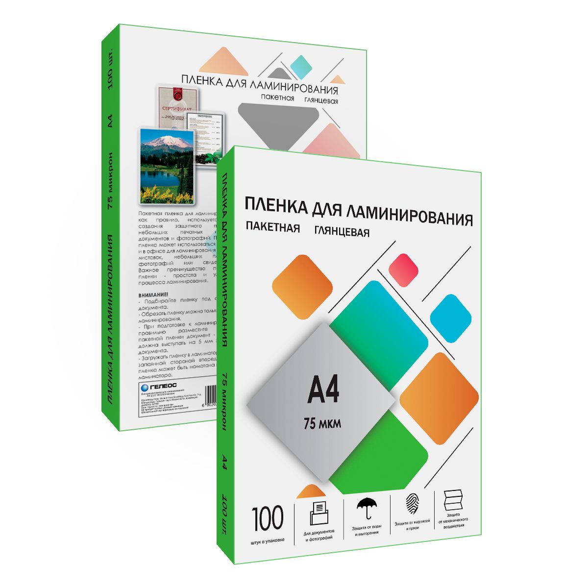 Формат: А4 Толщина, мкм: 100 Количество штук в упаковке: 100 Торговая марка: Гелеос Поверхность: глянцевая Размер (ДхШ), мм: 216х303 Мин. партия и варианты упаковок: 1 / 10 -