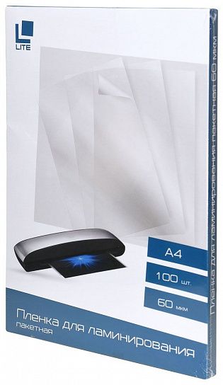Пленка пакетная для ламинирования LITE глянцевая, формата А4 (216 х 303 мм) плотностью 60 мкм предназначена для ламинирования документов. Подходит для использования в ламинаторах "горячего" типа. Плёнка для ламинации LITE состоит из 3-х слоев PET + PE + EVA, обладает высокой прозрачностью после ламинации, защищает документ от механических повреждений и воздействия влаги. Глянцевое покрытие пленки способствует сохранению и максимальной передаче цвета ламинируемого изображения.