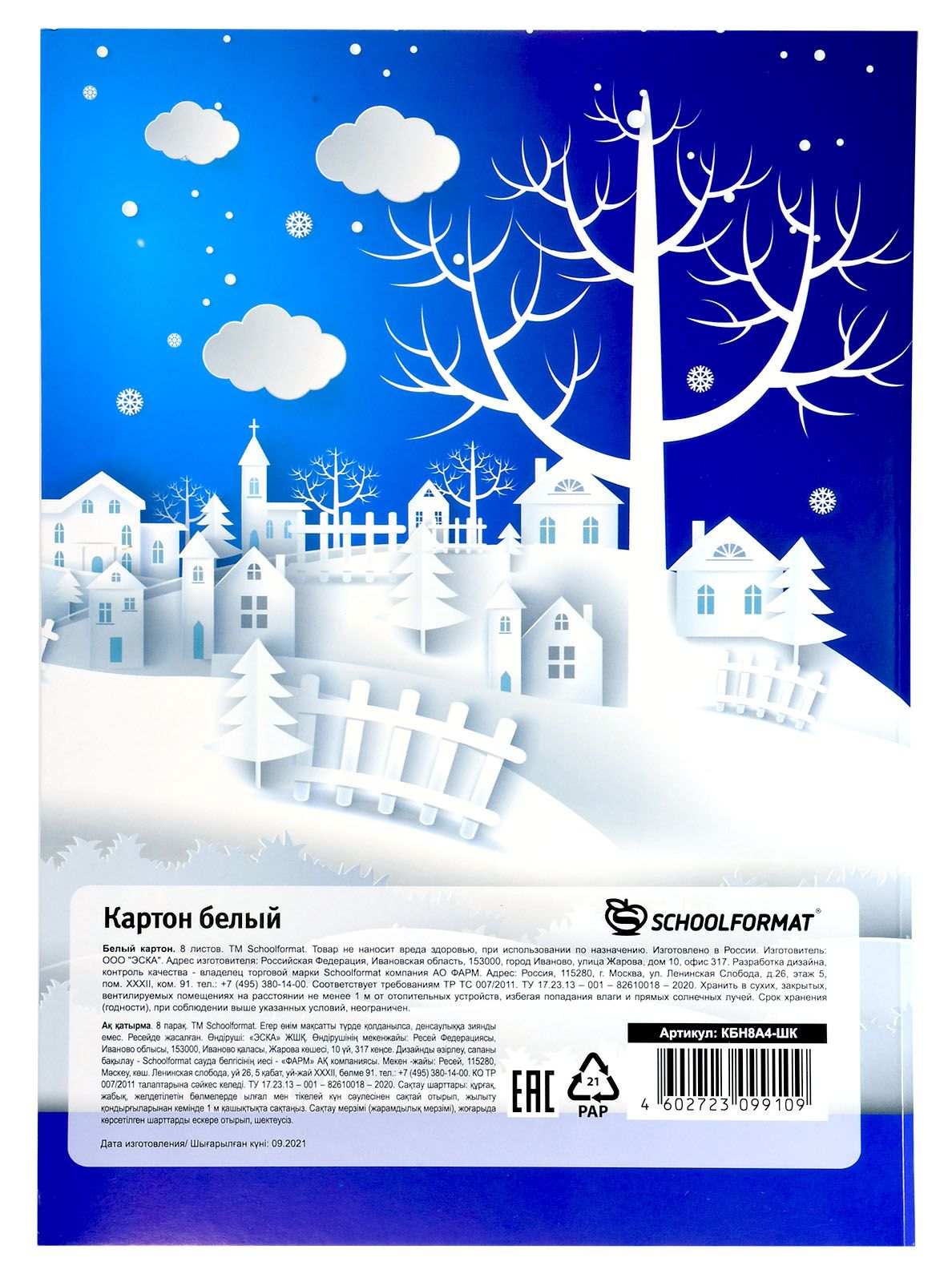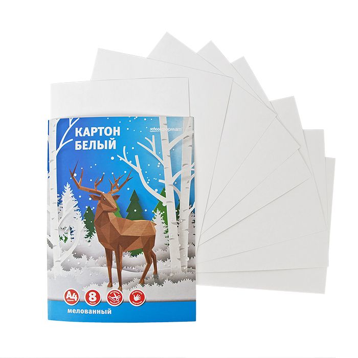 Формат: А4 Плотность, г/м2: 210 Количество листов: 8 Наличие европодвеса: Нет Упаковка: картонная папка Тип скрепления: нет Мин. партия и варианты упаковок: 1 / 50 Картон белый Schoolformat 8 листов, мелованный А4 200х279 мм 210 г/м2