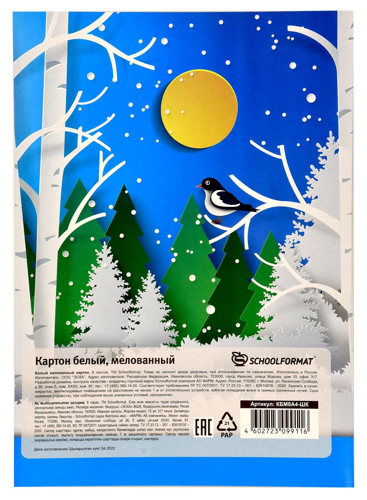 Формат: А3 Плотность, г/м2: 200 Количество листов: 8 Наличие европодвеса: Нет Упаковка: картонная папка Тип скрепления: нет Мин. партия и варианты упаковок: 1 / 25 -
