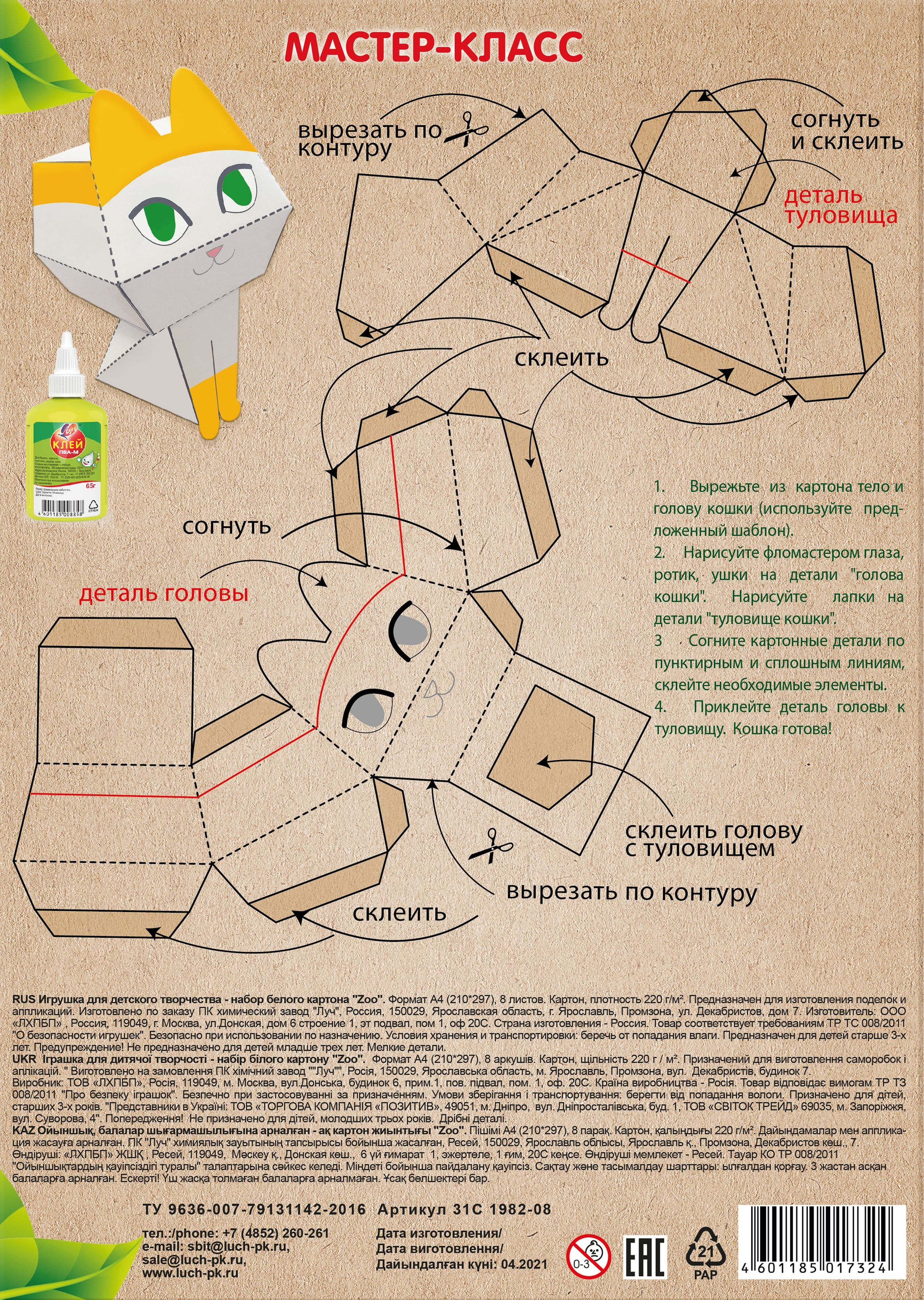 Формат: А4 Плотность, г/м2: 220 Количество листов: 8 Наличие европодвеса: Нет Упаковка: картонная папка Тип скрепления: нет Мин. партия и варианты упаковок: 1 / 50 Картон белый Луч ZOO БАРС 8 листов, немелованный А4 210х297 мм 220 г/м2