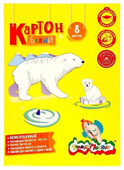 Формат: А3 Плотность, г/м2: 200 Количество листов: 8 Наличие европодвеса: Нет Упаковка: картонная папка Тип скрепления: нет Мин. партия и варианты упаковок: 1 / 25 Картон белый Каляка-Маляка 8 листов, мелованный А3 295х417 мм 200 г/м2
