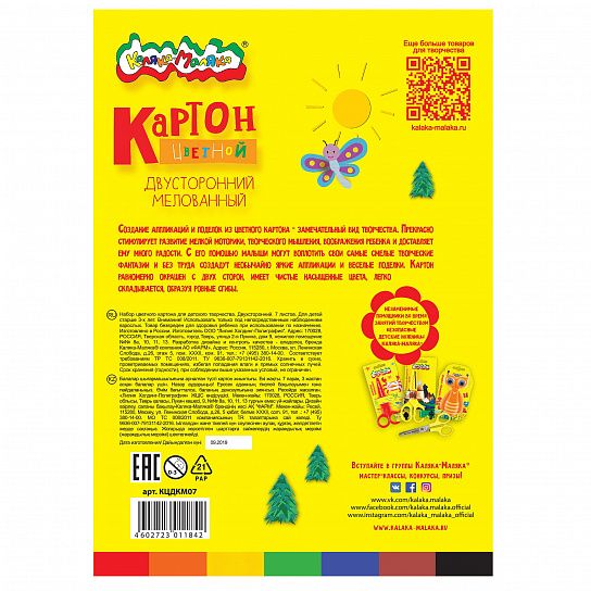 Картон цветной двусторонний мелованный Каляка-Маляка® идеально подходит для создания аппликаций и поделок. Насыщенная цветность, глянцевая поверхность и повышенная гибкость поможет сделать поделки аккуратными и яркими!