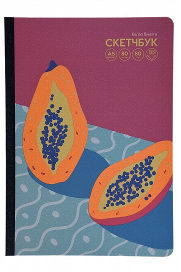 Формат: А5 Количество листов: 80 Тип крепления: швейно-клеевое Материал обложки: мелованный картон Размер: 145х205 мм Наличие перфорации: Нет Мин. партия и варианты упаковок: 1 / 24 Скетчбук для творчества АРТформат ПАПАЙЯ 145 х 205 мм офсет 80 г/м2 80 листов А5 шв-клеев. мелованный картон матовая ламинация