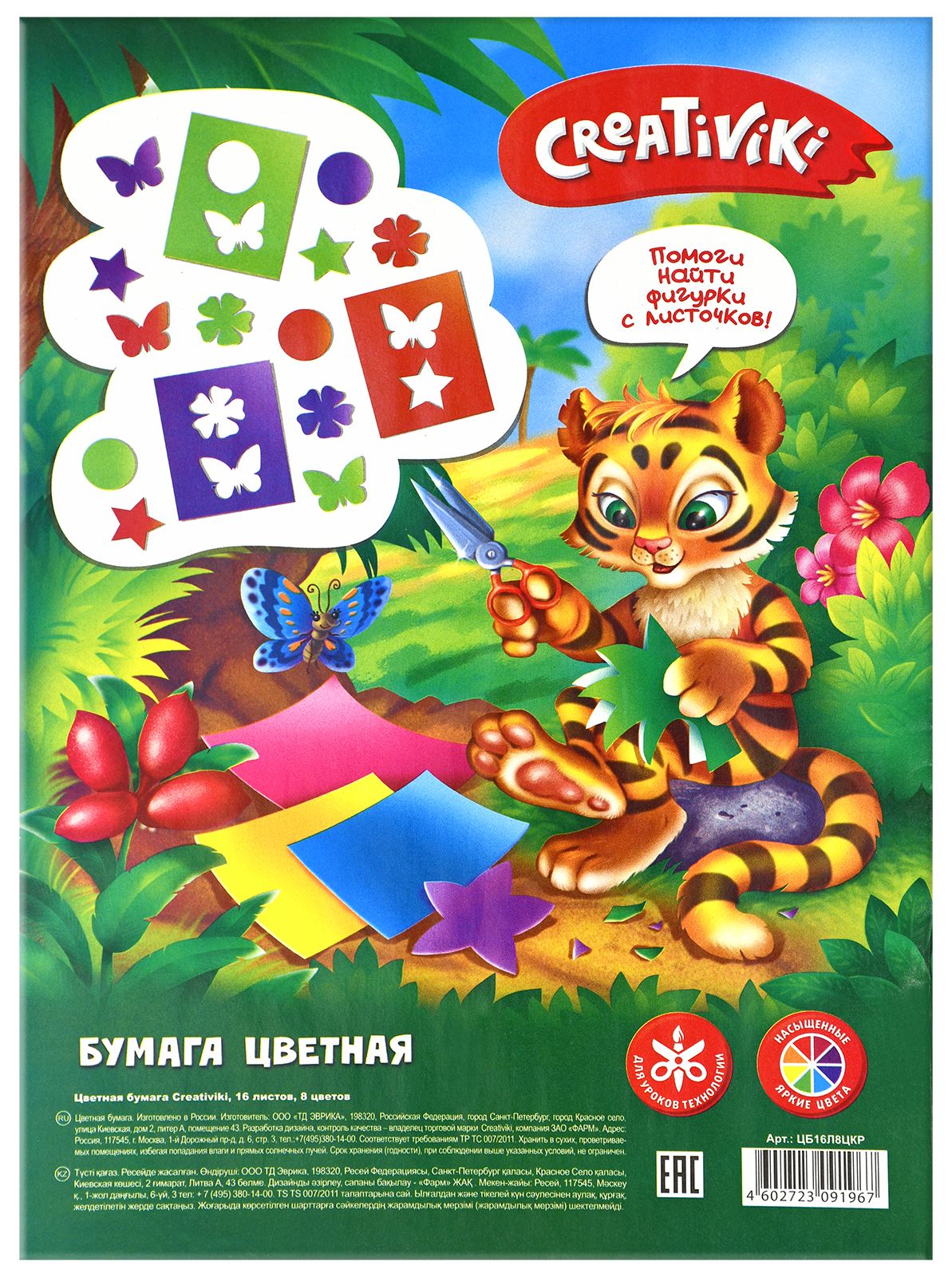 Формат: А4 Плотность, г/м2: 45 Количество листов: 16 Вид продукции для творчества: Бумага цветная Количество цветов: 16 Наличие европодвеса: Нет Мин. партия и варианты упаковок: 1 / 50 -