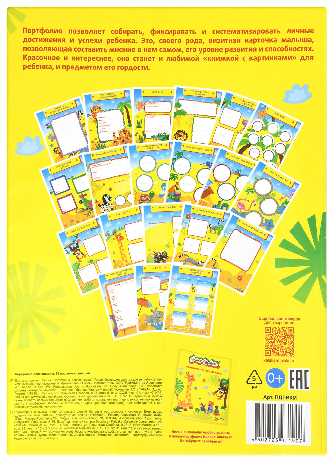 Формат: А4 Цвет: желтый Вид изделия: Листы-вкладыши для портфолио Назначение: для дошкольников Пол ребенка: универсальный Количество вкладышей: 20 Мин. партия и варианты упаковок: 1 / 25 Листы-вкладыши для портфолио для дошкольников Каляка-Маляка желтая А4 20 л. универсальные