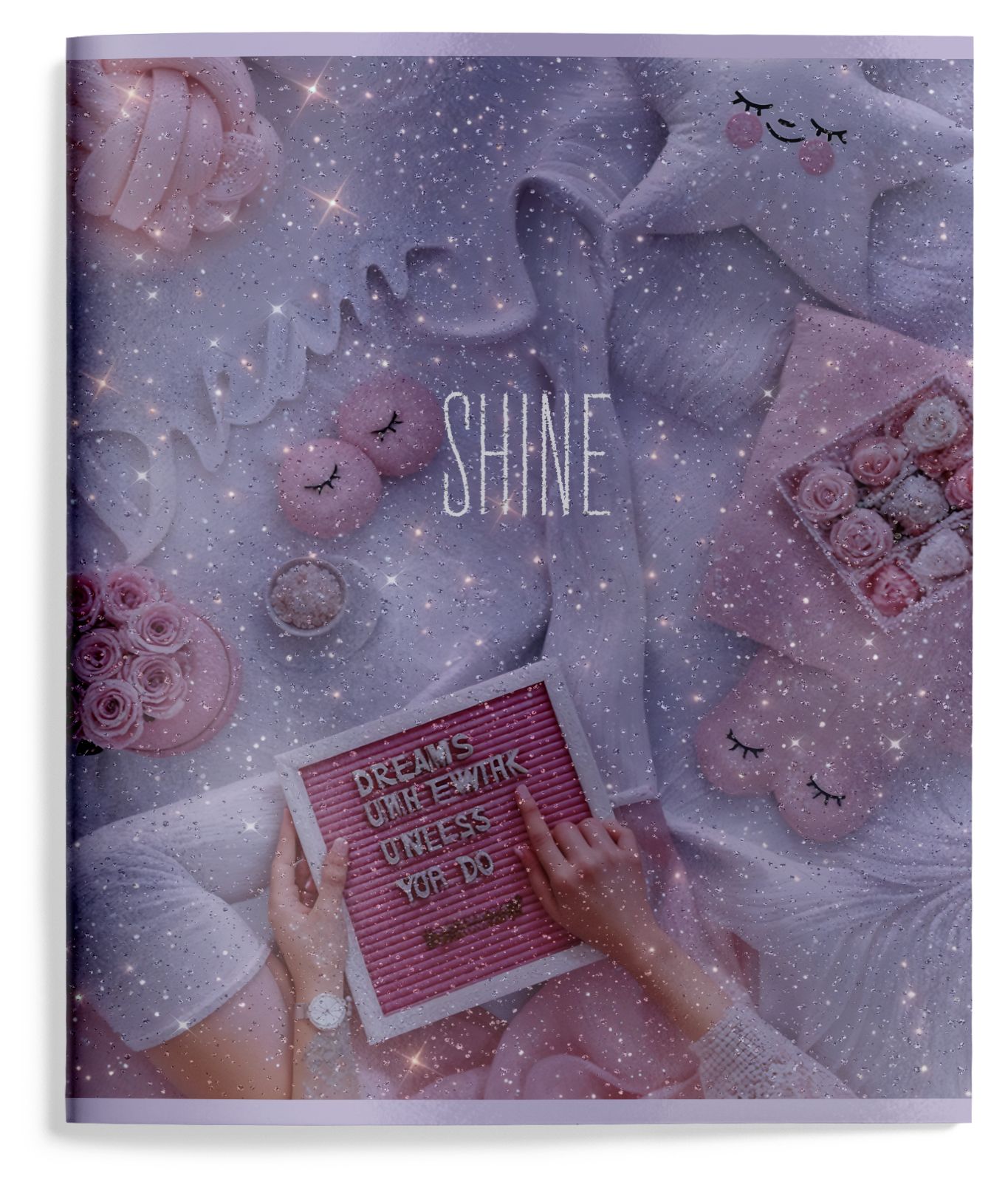 Формат: А5 Количество листов: 48 Тип крепления: скрепка Материал обложки: мелованный картон Линовка: клетка Размер: 170х205 мм Мин. партия и варианты упаковок: 1 / 4 / 96 Тетрадь 48 л. А5 клетка, на скрепке, офсет Schoolformat БЛЕСТКИ мелованный картон, выборочный УФ-лак, блёстки