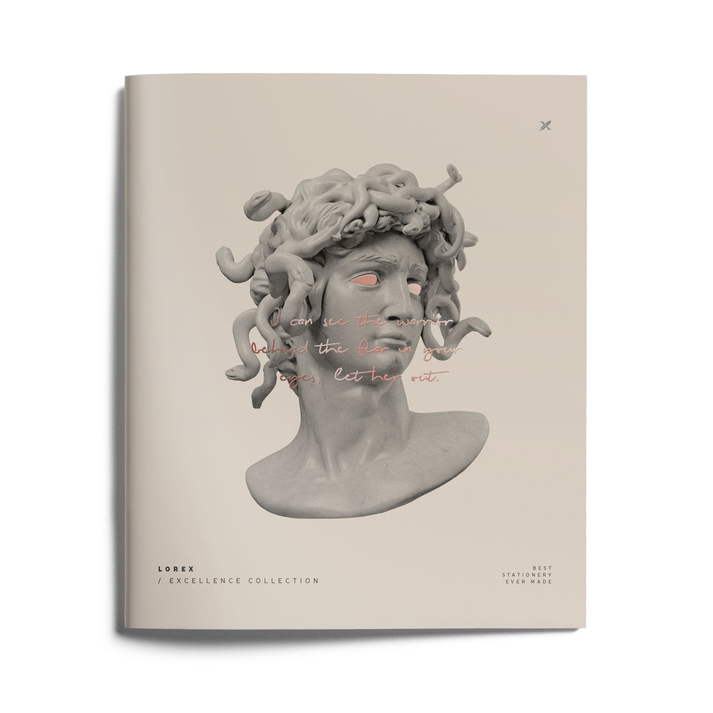 Формат: А5 Количество листов: 48 Тип крепления: скрепка Материал обложки: мелованный картон Линовка: клетка Размер: 165х205 мм Мин. партия и варианты упаковок: 1 / 5 / 60 Тетрадь 48 л. А5 клетка, на скрепке, офсет LOREX BEAUTY INSIDE мелованный картон, запечатка форзаца, soft touch, выборочный УФ-лак
