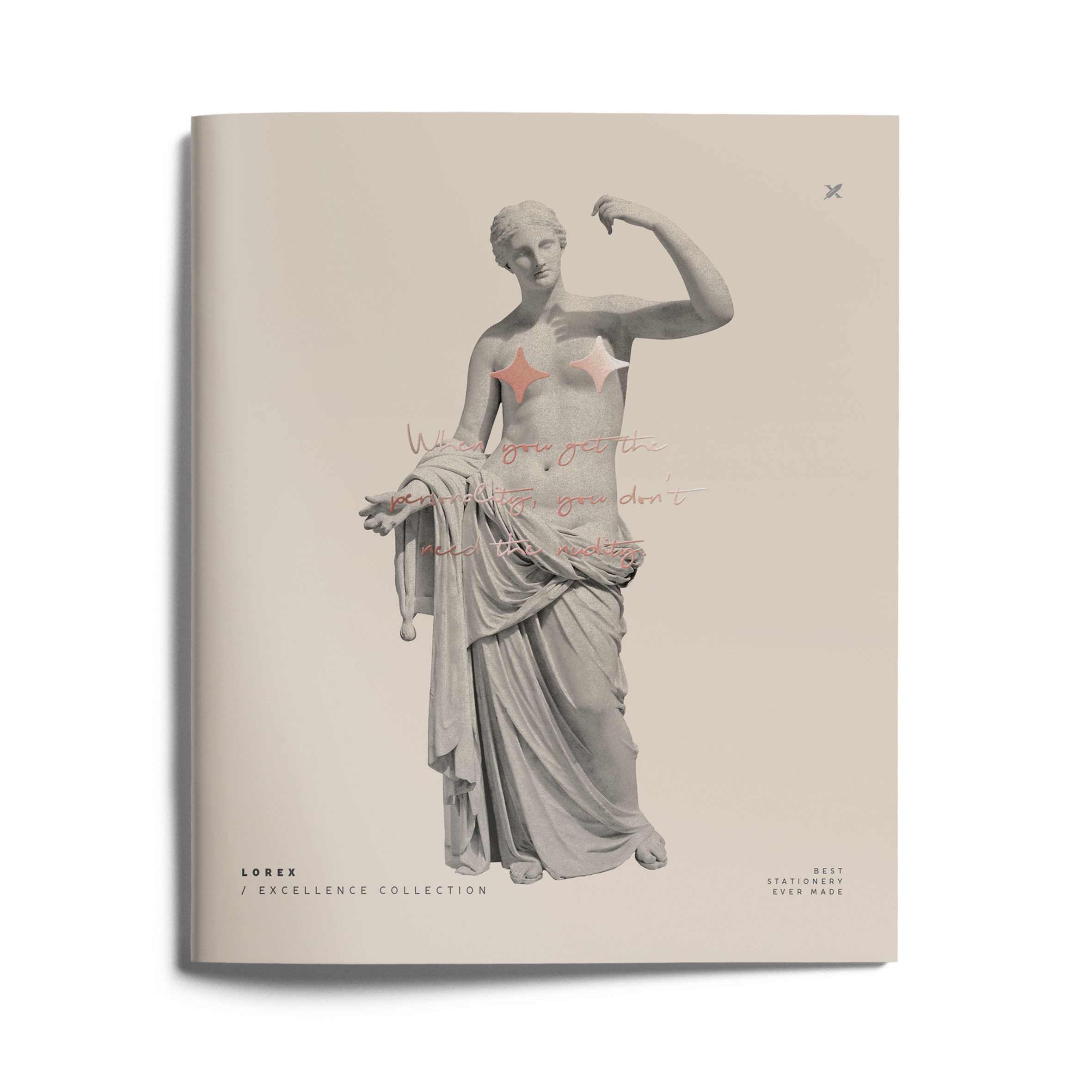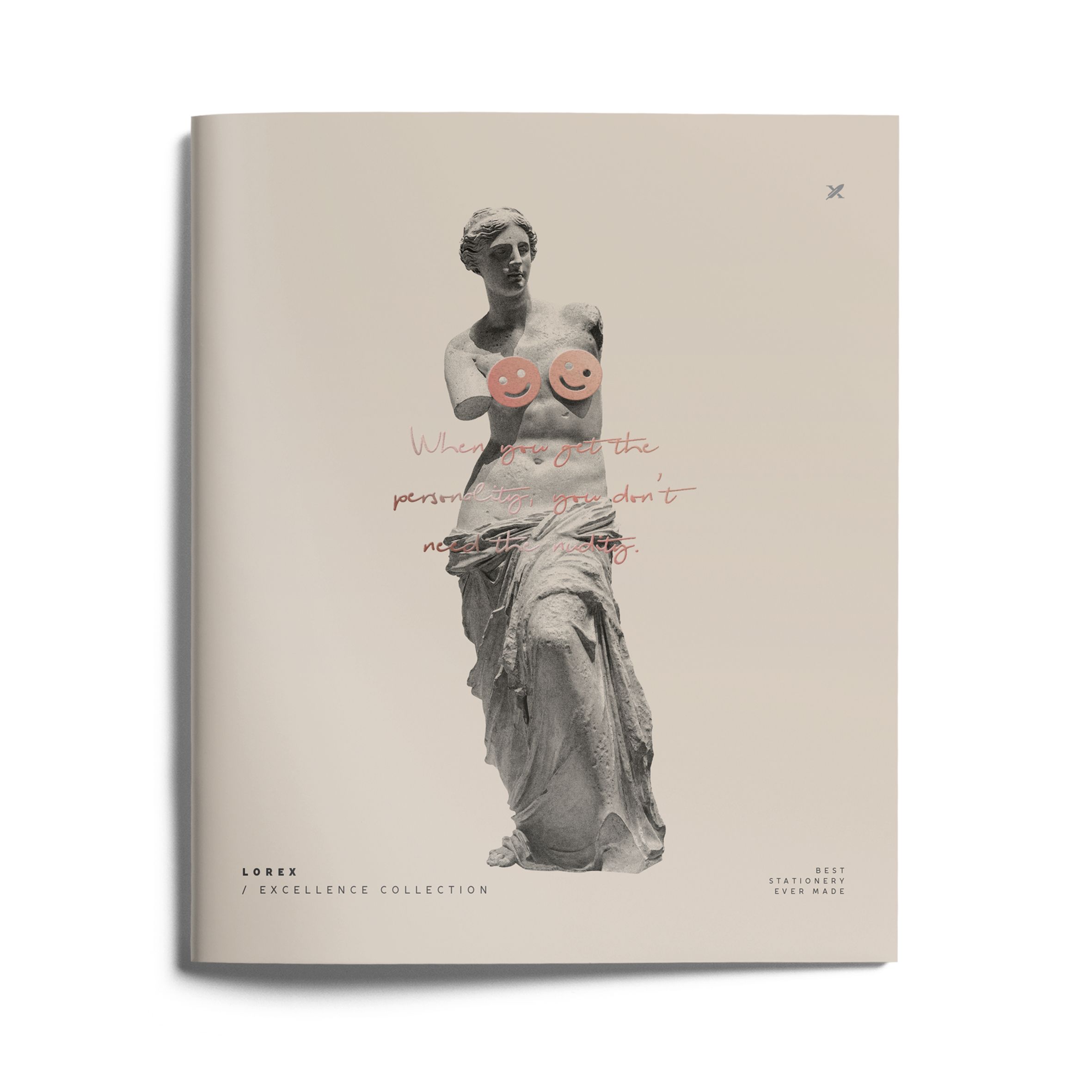 Формат: А5 Количество листов: 48 Тип крепления: скрепка Материал обложки: мелованный картон Линовка: клетка Размер: 165х205 мм Мин. партия и варианты упаковок: 1 / 5 / 60 Тетрадь 48 л. А5 клетка, на скрепке, офсет LOREX POSTMODERN мелованный картон, запечатка форзаца, soft touch, выборочный УФ-лак