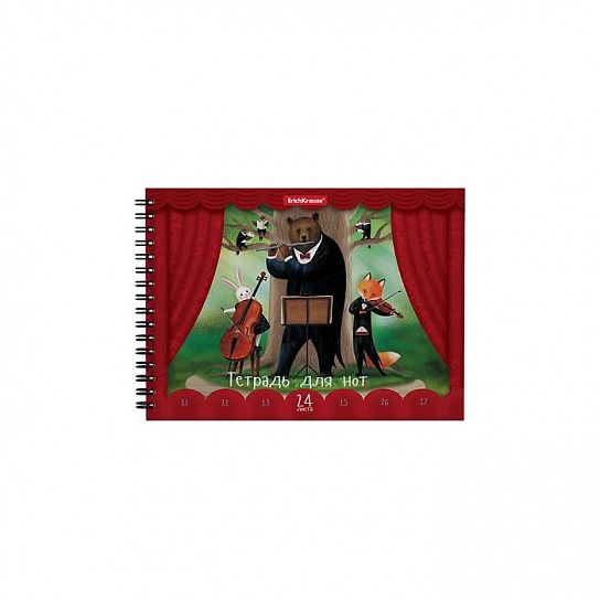 Формат: А5 Количество листов: 24 Тип крепления: спираль Материал обложки: мелованный картон Размер: 146x200 мм Ориентация: горизонтальный Мин. партия и варианты упаковок: 1 / 10 / 80 Тетрадь для нот 24 л. А5 ErichKrause ЛЕСНОЙ АНСАМБЛЬ мелованный картон, на спирали, горизонтальная