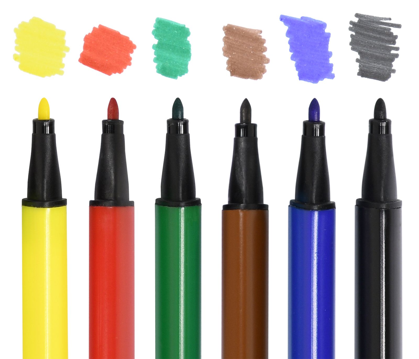 Коллекция новых фломастеров представлена в черной матовой упаковке, с пластиковым ложементом, что подчеркивает её принадлежность к премиальным продуктам. Для школьников, интересующихся творчеством, яркие и насыщенные цвета фломастеров могут стать источником вдохновения для создания первых шедевров!Изящный матовый корпус фломастера удобно держать в руке, а эргономичная трехгранная форма способствует правильной постановке руки ребенка и школьника. Кроме того, в серии фломастеров сделан специальный толстый фибровый наконечник, толщина которого 2,5 мм, что позволяет рисовать толстую линию и быстро разукрашивать рисунки.