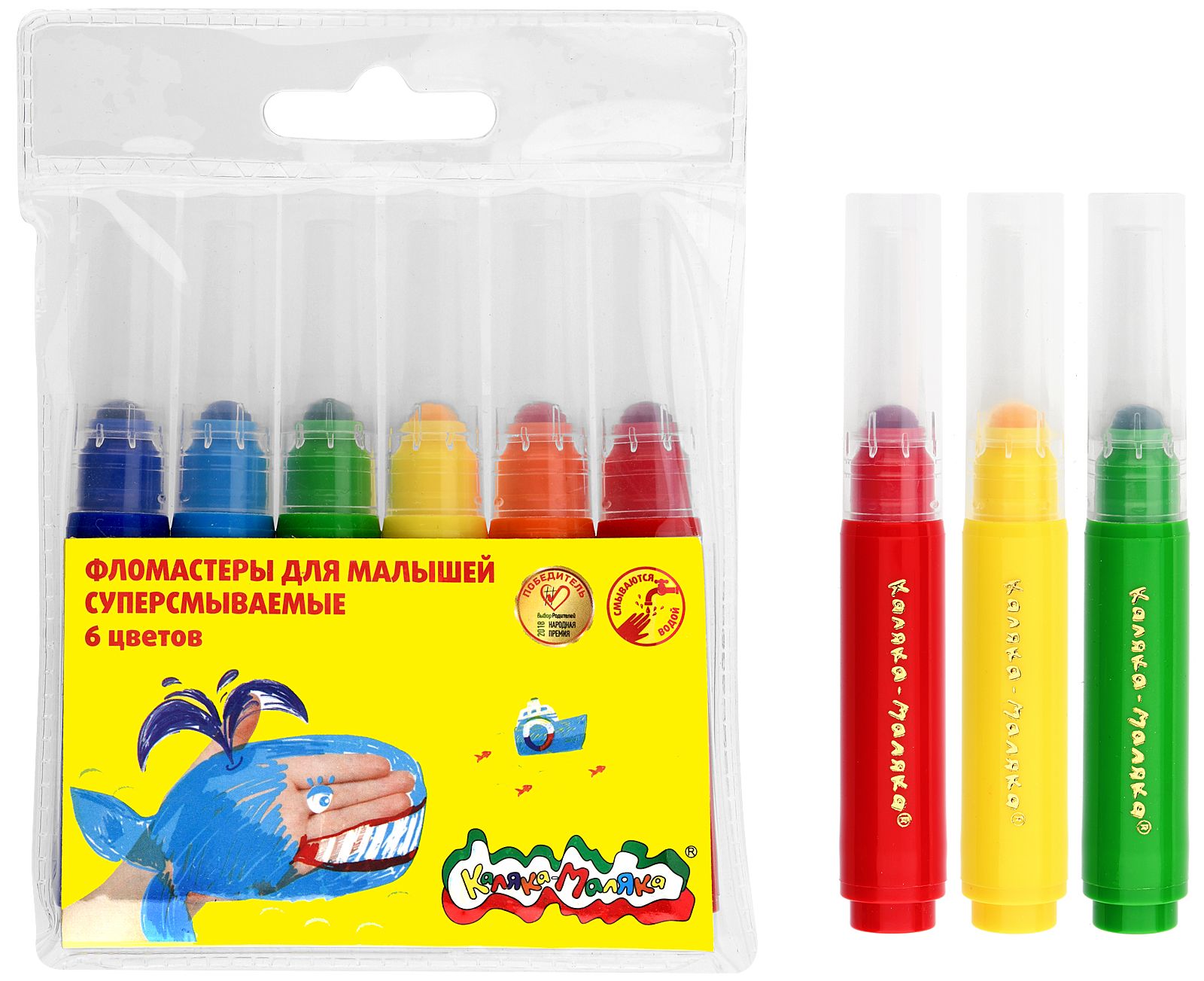 Фломастеры Каляка-Маляка для малышей утолщенные классические 6 цв. круглый корпус, суперсмываемые, блистер