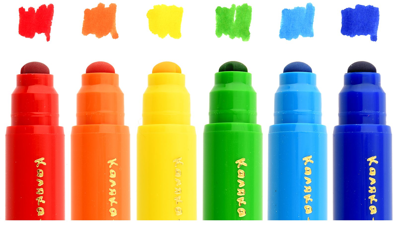 • Треугольные маркеры и фломастеры для рисования с утолщенным корпусом удобнее лежат в руке и меньше утомляют кисть.