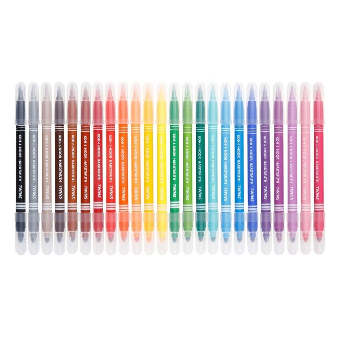 Фломастеры Koh-I-Noor TWIN 1023 классические 24 цв. легкосмываемые, двухсторонние, ПВХ чехол