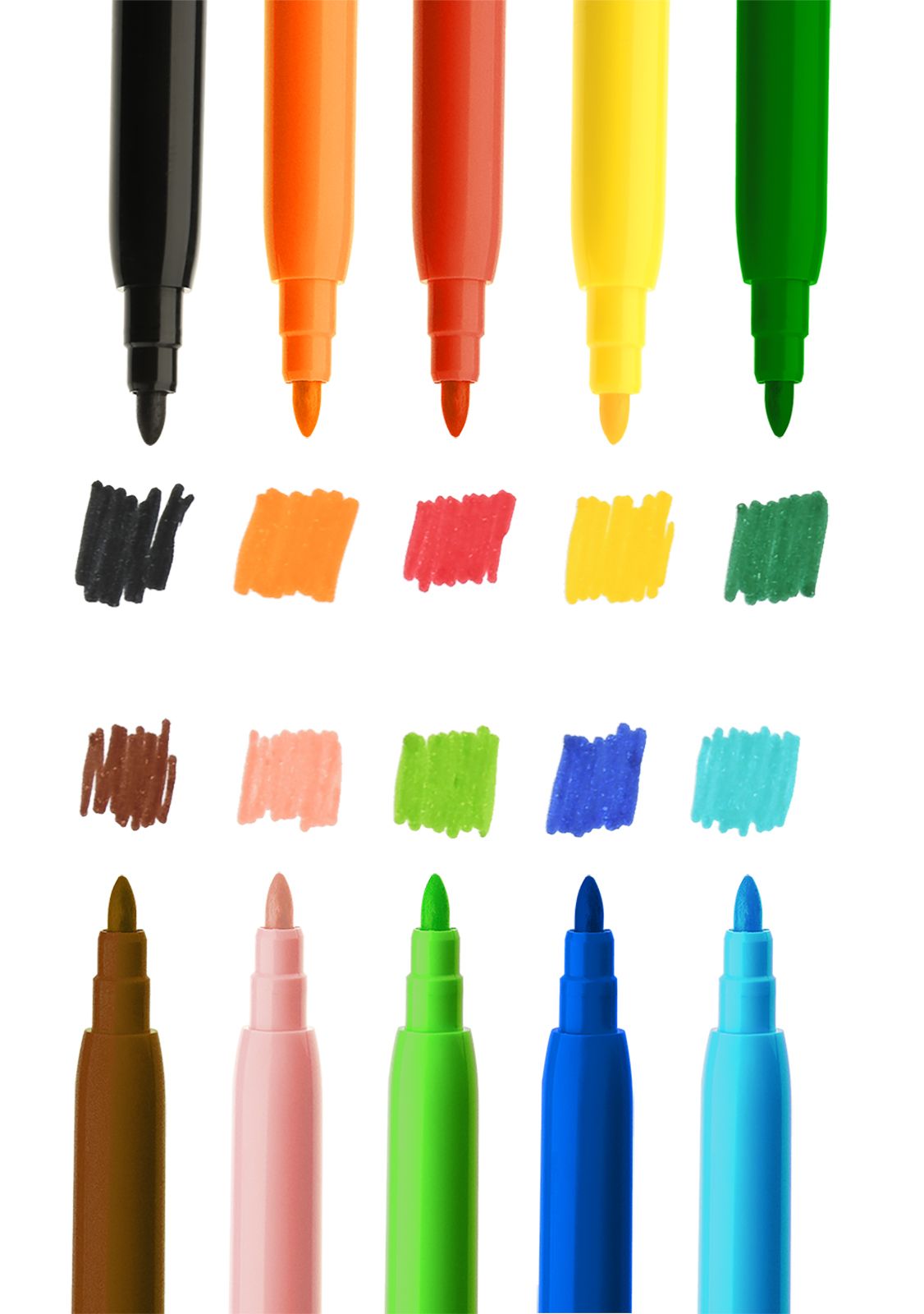 Фломастеры обладают уникальным пишущим узлом, безопасным для детей от 1 года.-Эргономичный корпус для детской руки.-Легко смываемые чернила на водной основе.-Вентилируемые колпачок.