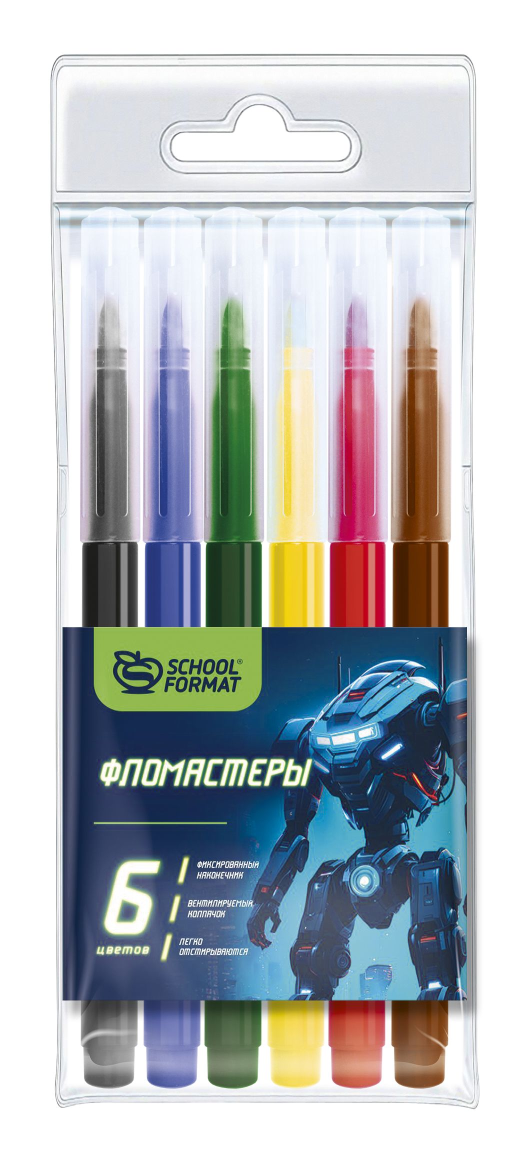 Количество цветов: 6 Наличие европодвеса: Да Форма наконечника: конический Тип фломастеров: классические Вид товара: Фломастеры Возраст: от 3 лет Мин. партия и варианты упаковок: 1 / 24 / 384 Фломастеры Schoolformat МИКС ДЛЯ МАЛЬЧИКОВ классические 6 цв. круглый корпус, смываемые, блистер
