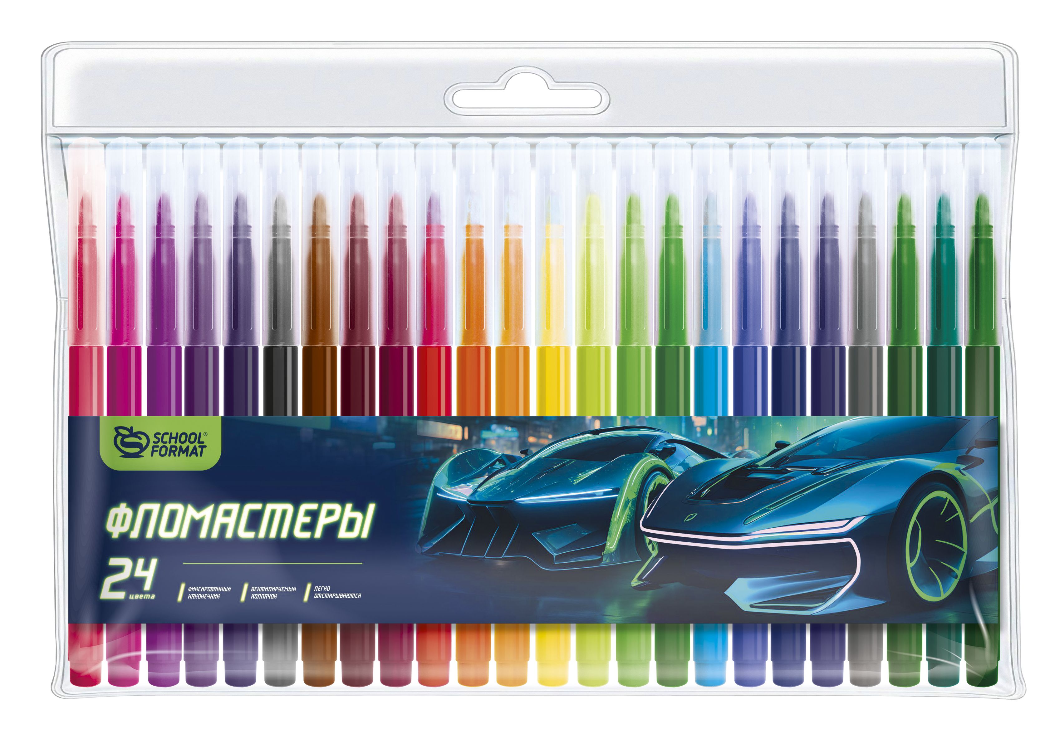 Количество цветов: 24 Наличие европодвеса: Да Форма наконечника: конический Тип фломастеров: классические Вид товара: Фломастеры Возраст: от 3 лет Мин. партия и варианты упаковок: 1 / 24 / 96 Фломастеры Schoolformat МИКС ДЛЯ МАЛЬЧИКОВ классические 24 цв. круглый корпус, смываемые, блистер