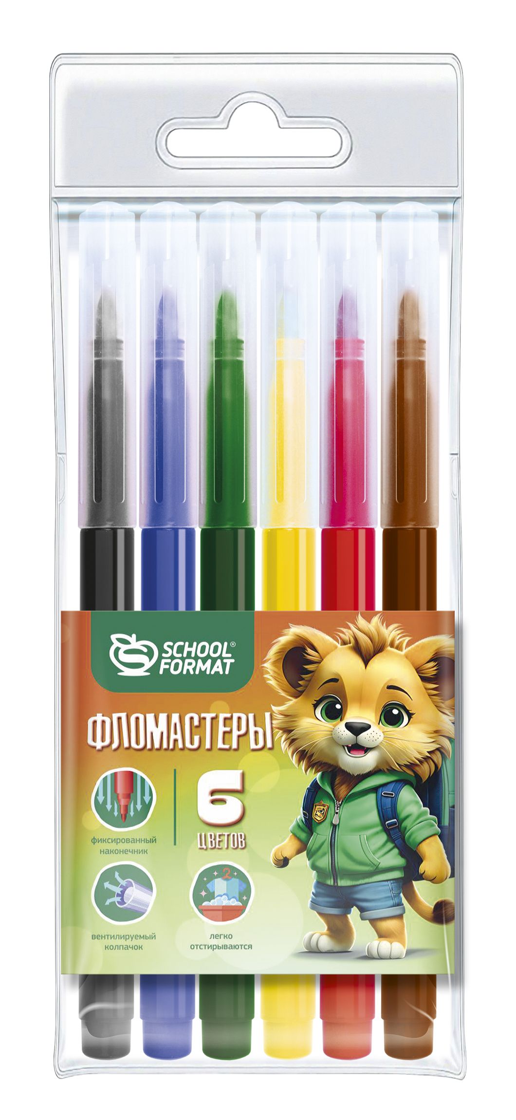 Количество цветов: 6 Наличие европодвеса: Да Форма наконечника: конический Тип фломастеров: классические Вид товара: Фломастеры Возраст: от 3 лет Мин. партия и варианты упаковок: 1 / 24 / 384 Фломастеры Schoolformat ЯРКИЕ ЗВЕРЯТА классические 6 цв. круглый корпус, смываемые, блистер