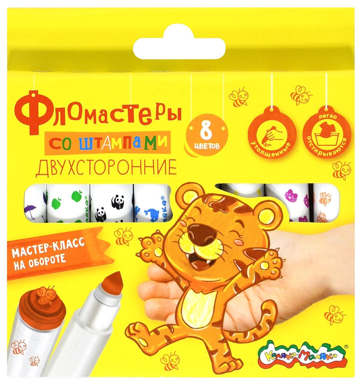 Фломастеры со штампами Каляка-Маляка® 2 в 1 открывают еще больше возможностей для игры и экспериментов в творческих занятиях ребенка! С одной стороны фломастеров утолщенный грифель треугольной формы, с другой стороны — увлекательные цветные штампики! Разработаны для детей в возрасте от 3 лет.