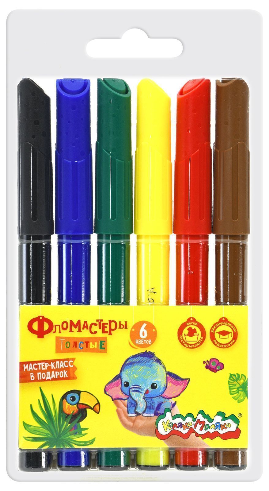 Толстые фломастеры Каляка-Маляка® имеют особый утолщенный корпус, который снижает усталость кисти ребенка и обеспечивает максимальный уровень комфорта при рисовании. С этими фломастерами рука маленького художника долго не устанет.