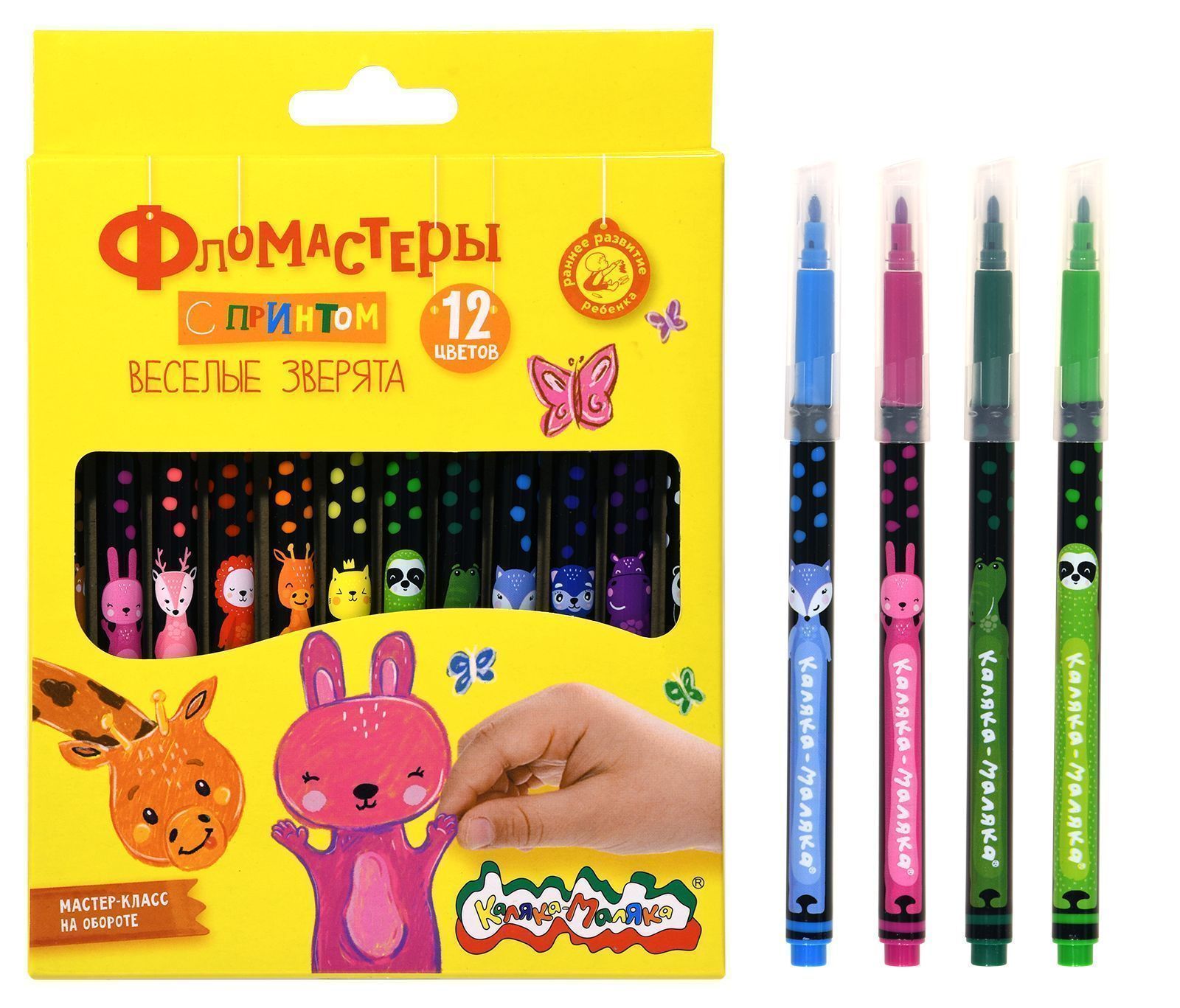 Фломастеры Каляка-Маляка® одни из самых ярких, долговечных и безопасных фломастеров на рынке. Разработаны для детей в возрасте от 3 лет. Весёлые зверята на корпусе привлекут внимание ребенка и несомненно помогут увлечь его в мир творчества!